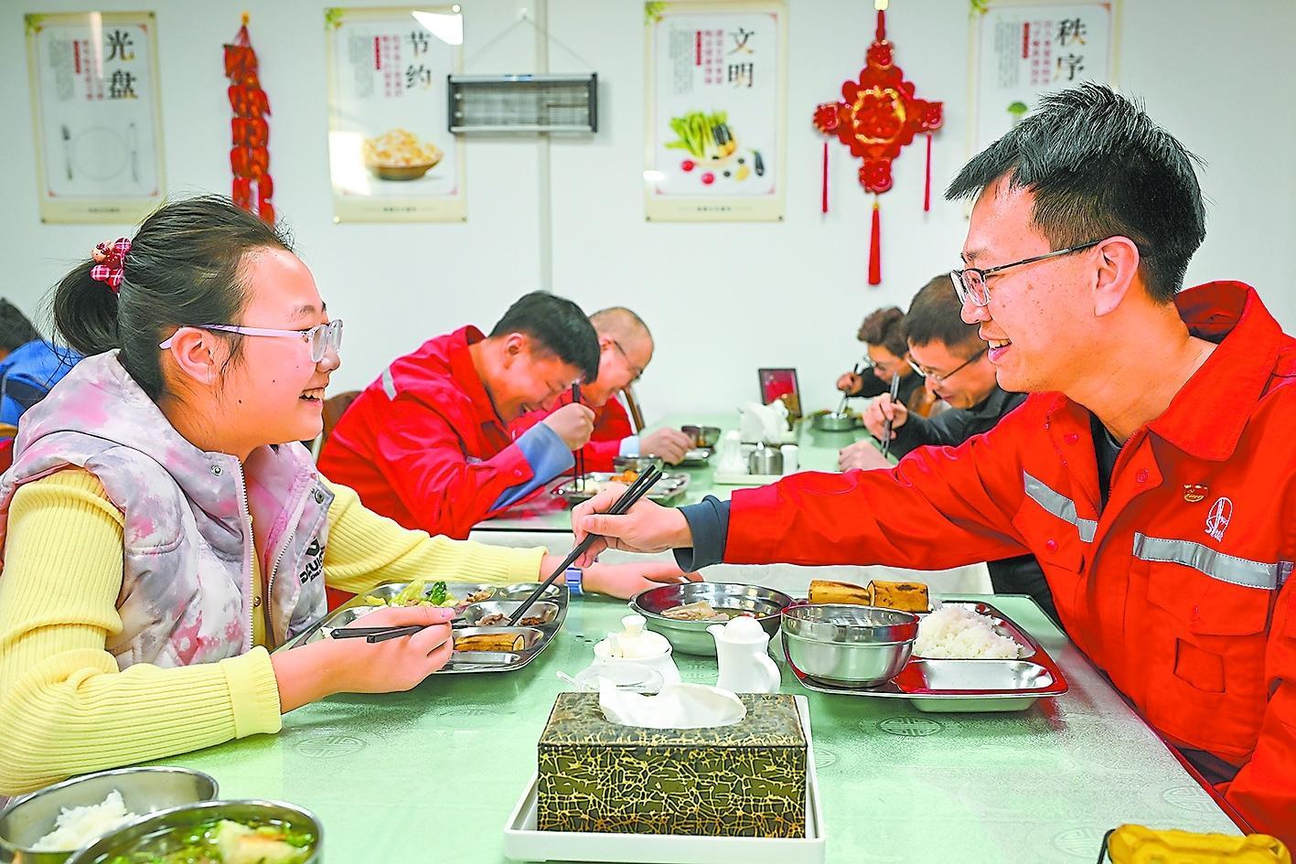 “沙漠荒志向不荒,风沙大决心更大”。西北油田顺北油气田生产运行指挥中心里,工作人员紧盯屏幕,以数智化赋能安全生产;井场大门前,钻井队员工身着红工装拍下佳节合影,让奋斗的身影定格在新春里;员工食堂里,在岗的一线员工与家人围坐一桌,简单的饭菜盛满了团圆的温暖。