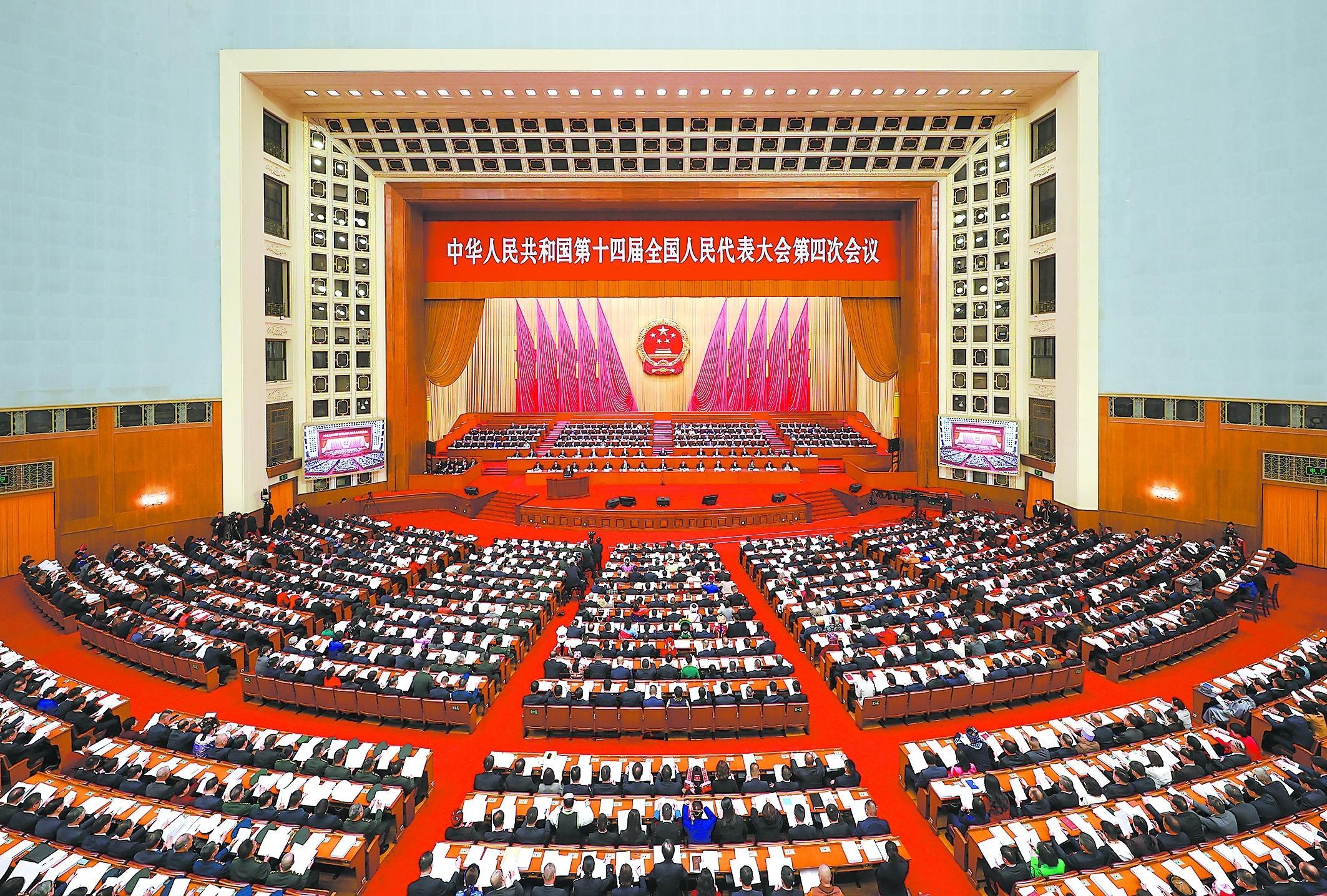 新华社北京3月5日电 第十四届全国人民代表大会第四次会议5日上午在北京人民大会堂开幕。全国人大代表肩负人民重托出席大会,履行宪法和法律赋予的神圣职责。