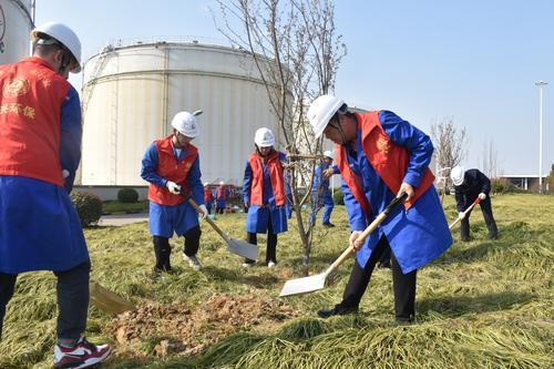 3月7日,浙江绍兴石油与绍兴市环保局联合开展“党建红 生态绿”主题党日,党员志愿者齐聚一堂,挥锹铲土、扶苗浇水,在春日里种下一片新绿。双方3年前在绍兴油库开辟共建林,种下友谊树,此次,大家再次相聚为共建林再添生机,共同守护绿水青山。席虹雨 摄 邱丽莉 文
