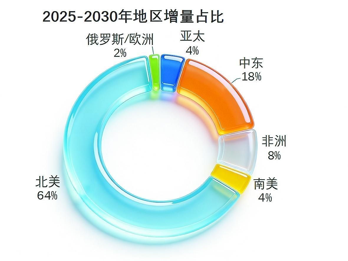 从长期发展趋势来看,预计到2030年,全球拥有LNG资源出口能力的国家将增至30个,全球天然气液化能力有望突破8.8亿吨/年。从新增能力的区域分布来看,增长动力主要来自3个方面:首先,北美地区贡献最大,新增液化能力占全球新增总量的64%;其次,中东—非洲地区液化能力显著增长,增量占比提高至26%;此外,亚太、欧洲及南美等地区也将有大量天然气液化项目投产,将释放可观的新增液化能力,共同推动全球LNG供应体系扩容。