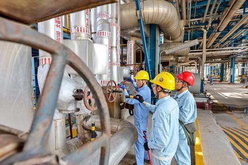 今年以来,扬子石化抢抓芳烃链行情向好机遇,聚焦盈利性产品稳产高产,制定生产运行优化小指标竞赛方案,共梳理102项节能措施,通过精细操作和节能优化,截至3月11日,PX(对二甲苯)产量达18.79万吨,创同期历史新高。图为芳烃部二甲苯工区班组人员在现场优化调整操作。