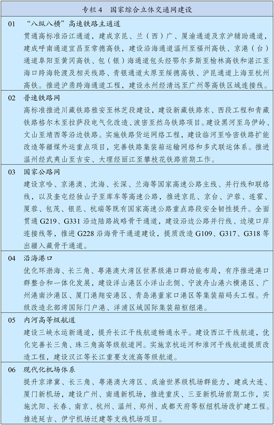 加强港澳与内地经贸、科技、人文等合作,完善便利港澳居民在内地发展和生活政策措施。有序推进与内地金融市场互联互通,深化与内地产学研创新协同。深化粤港澳合作,持续推动重点领域合作实现突破,促进港口、机场和轨道交通协同发展,建设广州至珠海(澳门)高铁,推进港深西部铁路前期工作。深化琴澳一体化发展,高质量建设前海、南沙、河套等重大合作平台。建设澳门国际机场横琴前置货站,推进澳琴国际教育(大学)城建设,支持澳门高校在横琴延伸办学。健全香港、澳门在国家对外开放中更好发挥作用机制,支持港澳深度参与高质量共建“一带一路”,发挥专业服务优势协助企业“走出去”。发挥港澳在中西文明交流互鉴中的重要窗口作用。