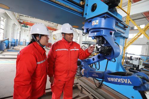 中原石油工程公司工程服务管理中心创新实施培训直通车计划,组建由4名主任技师、3名高级工程师构成的培训小组,深入21个作业现场,开展“理论讲解+实操演练+现场答疑”一体化培训。同时,推行师徒结对双向考核机制,将带徒成效与绩效挂钩,激发教学相长的内生动力。图为3月17日,该中心为新入职员工开展焊接机器人操作与维护专项培训。徐 东 摄