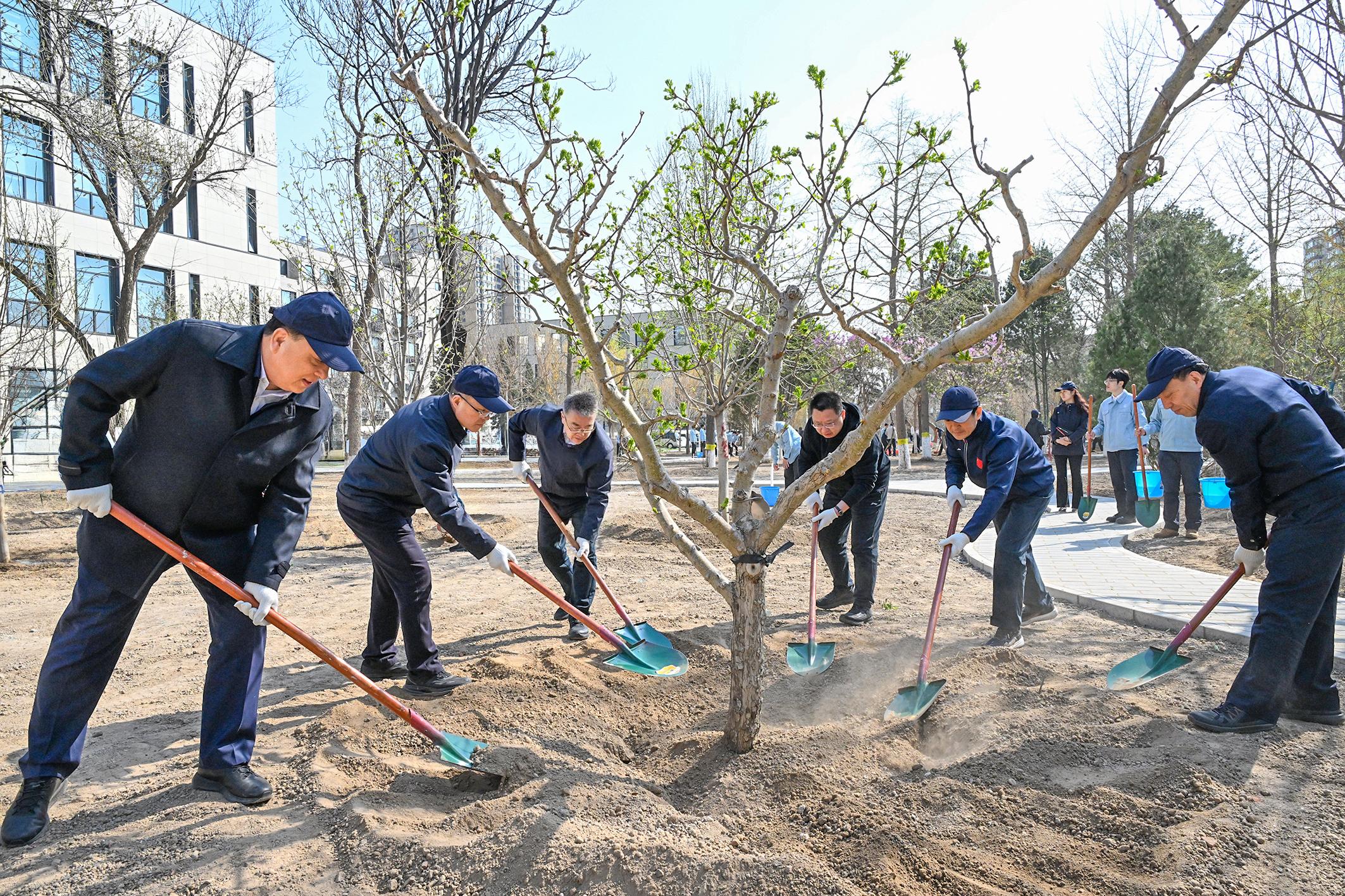 4月2日,侯启军、赵东、钟韧、王鹏等公司领导参加植树活动。 本报记者 胡庆明 摄