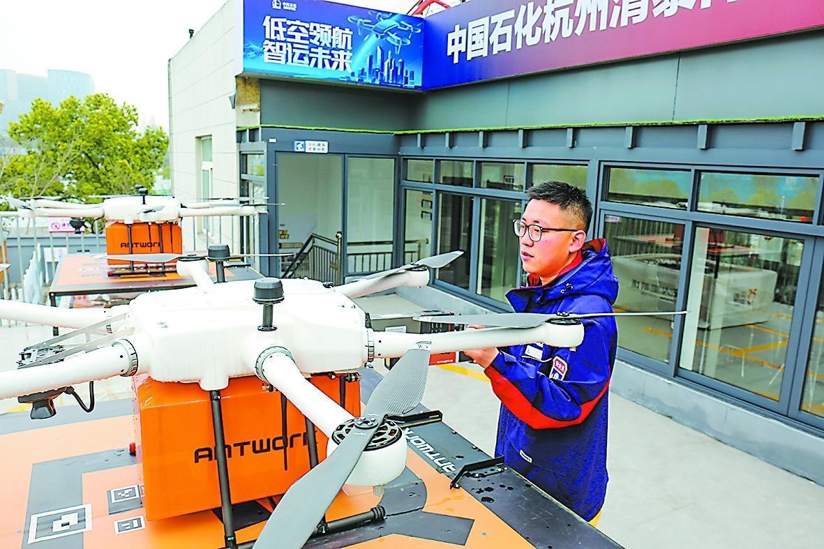 在城市低空物流领域,浙江杭州石油摒弃“大拆大建”模式,依托存量资源,将清泰门加能站升级打造为标准化低空服务枢纽,配套加装无人机起降平台、分拣架、能源补给装置等设施,实现无人机运营“一站式”集成服务。开通清泰门至申花、武林、吴山三条低空航线,覆盖应急医疗物资配送、城市即时配送、文旅商圈服务等多个场景。以往早高峰七八公里的地面配送需要40至50分钟,无人机配送仅需20多分钟,效率大幅提升。该航线开启至今,累计完成配送700余单,为城市居民提供了高效便捷的物流新体验。