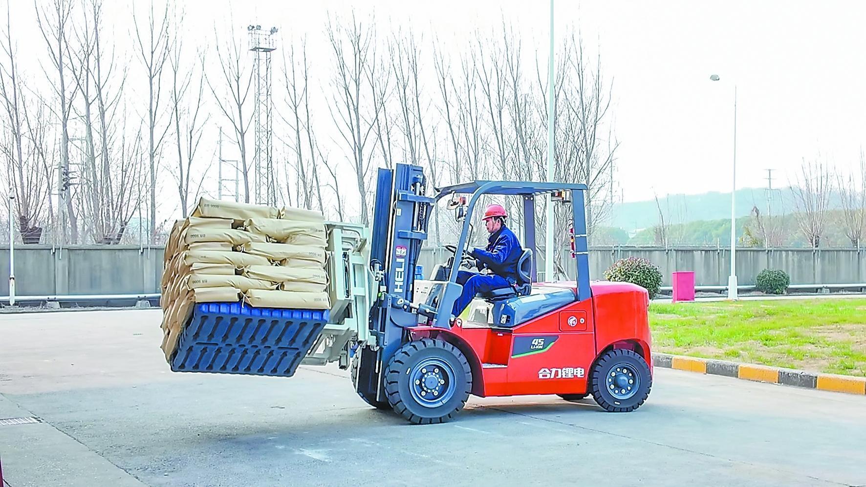 如今用上旋转叉车,直接就能把成品精准送进车厢内部完成码放,解决了人工码垛的核心痛点问题。