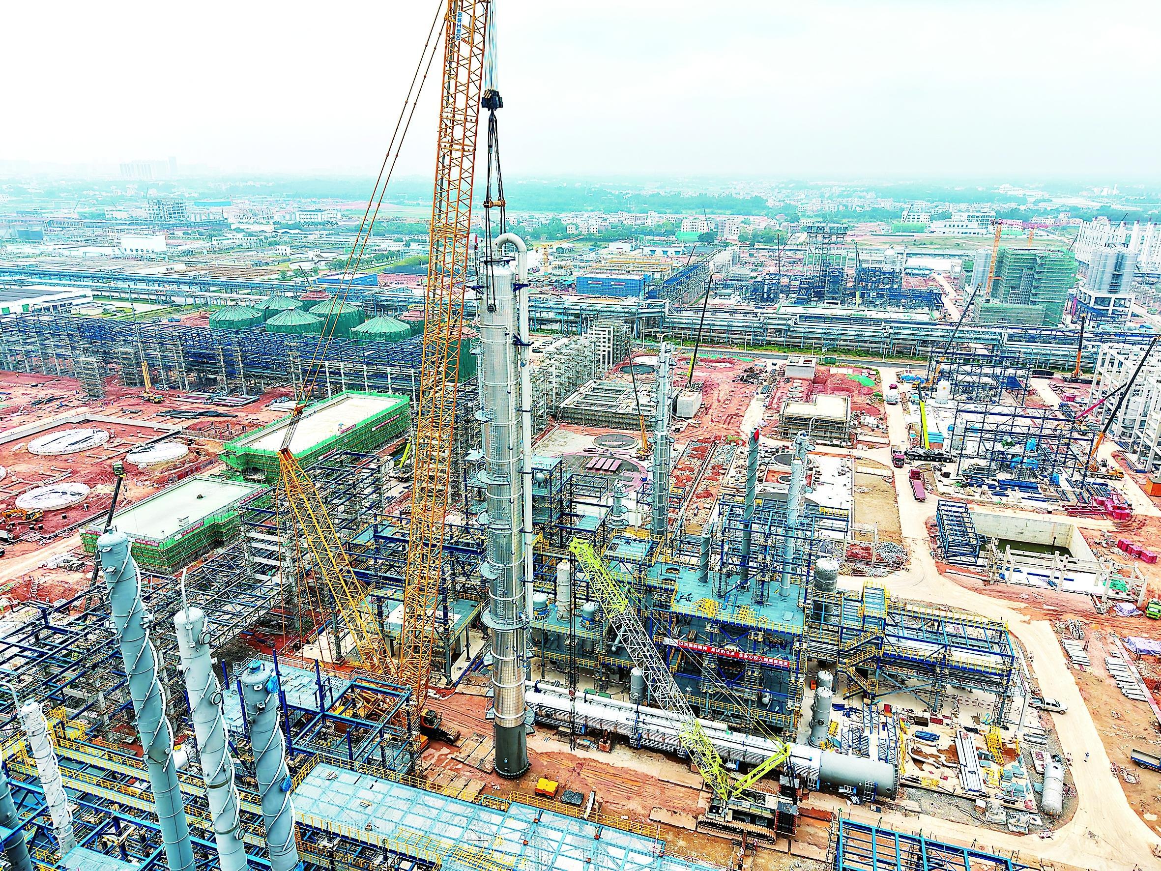 4月19日,茂名石化升级改造项目环氧丙烷装置最高塔器——C-1204萃取精馏塔顺利吊装就位。本次吊装的塔器高70.5米,总重265.5吨。茂名石化联合项目管理公司,组织上海工程公司、五建公司、起运公司等参建单位,反复论证吊装方案,现场开展施工推演,逐项核查作业条件,全面筑牢吊装安全防线,在吊装空间狭小、设备高、精度要求高的情况下实现一次精准就位。图为吊装现场。