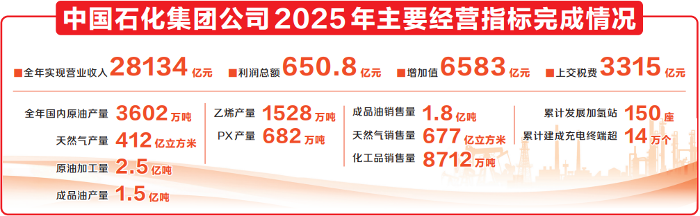 侯启军指出,过去的一年,世界政治经济格局发生深刻变化,能源化工行业进入深度调整期。面对严峻形势和挑战,中国石化集团公司坚持以习近平新时代中国特色社会主义思想为指导,深入学习贯彻党的二十大和二十届历次全会精神,对标对表习近平总书记对中央企业工作和视察胜利油田、九江石化重要指示精神,坚持稳中求进工作总基调,完整准确全面贯彻新发展理念,统筹推进生产经营、转型发展、改革创新、安全环保、风险防控,纵深推进全面从严治党,各项工作取得新进展新成效,全年生产经营总体平稳,财务状况保持稳健,转型步伐不断加快。在国际原油价格同比大幅下降的情况下,全年实现营业收入28134亿元、利润总额650.8亿元、税费3315亿元。