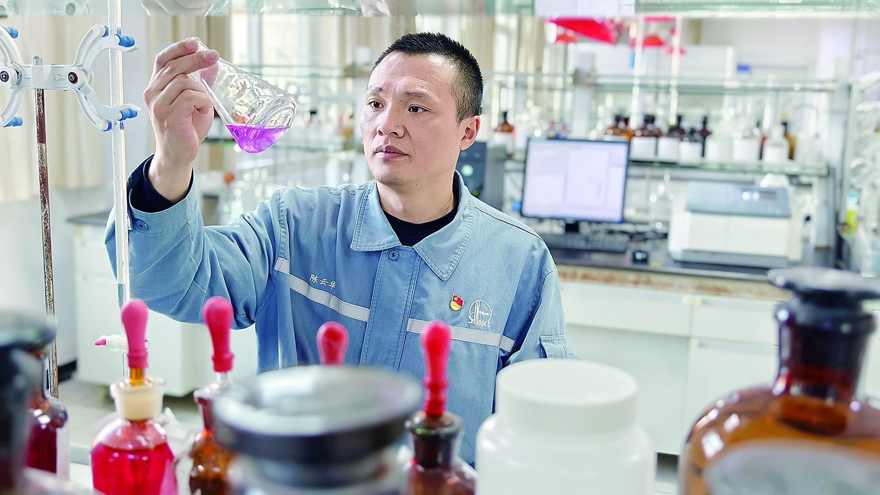 接下任务后,陈云华每天往返于间隔七八百米的两套化工装置之间,取样、化验、对比数据。经过半年多攻关,他终于成功“磨”出了一套通用分析法,使劳动效率提升50%,试剂消耗降低40%,用工上减少了两名操作人员。这套方法作为先进操作法被纳入公司操作宝典予以推广。