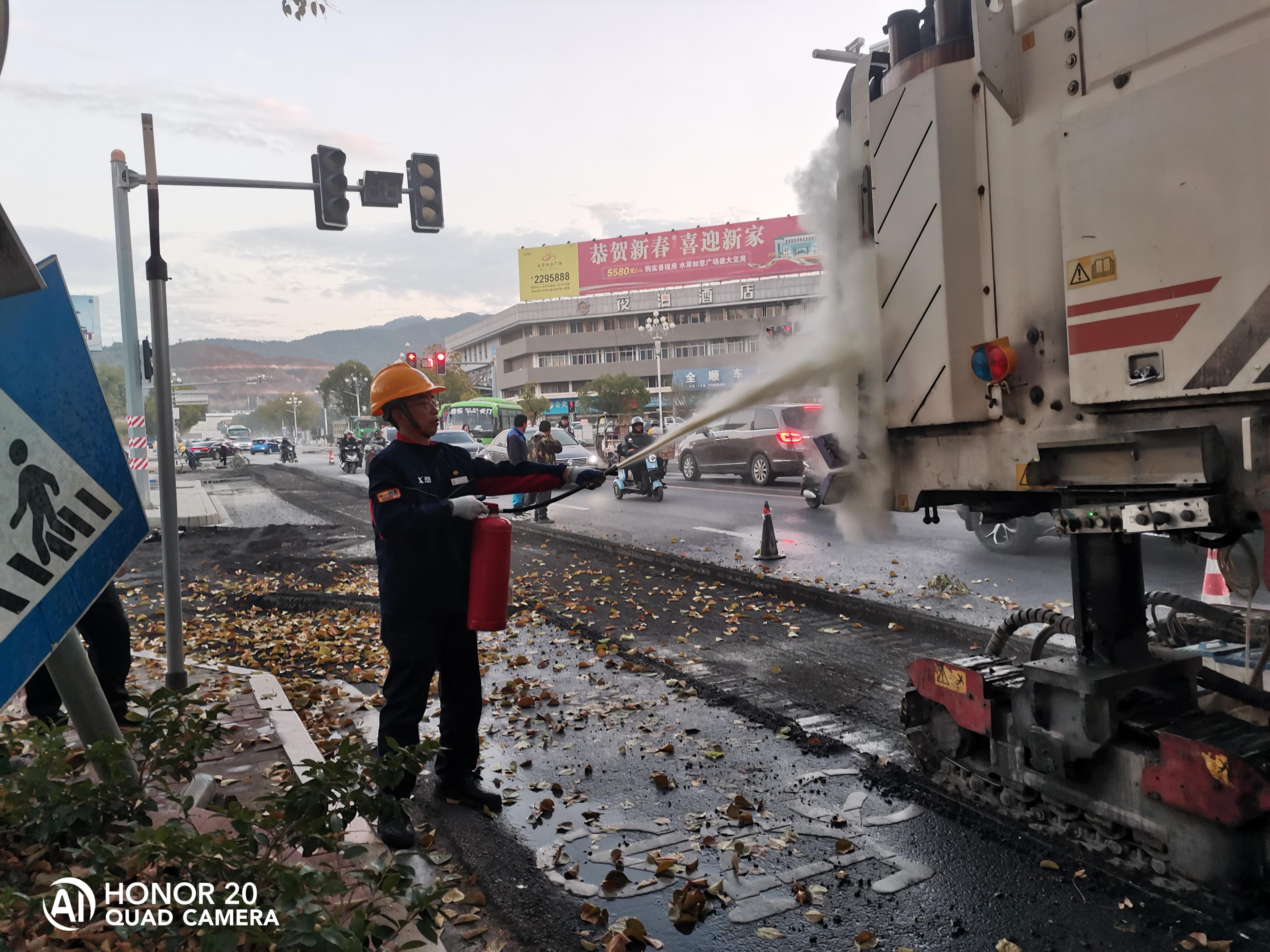 今日头条 | 站外工程车突发自燃,石化员工提灭火器冲刺灭火