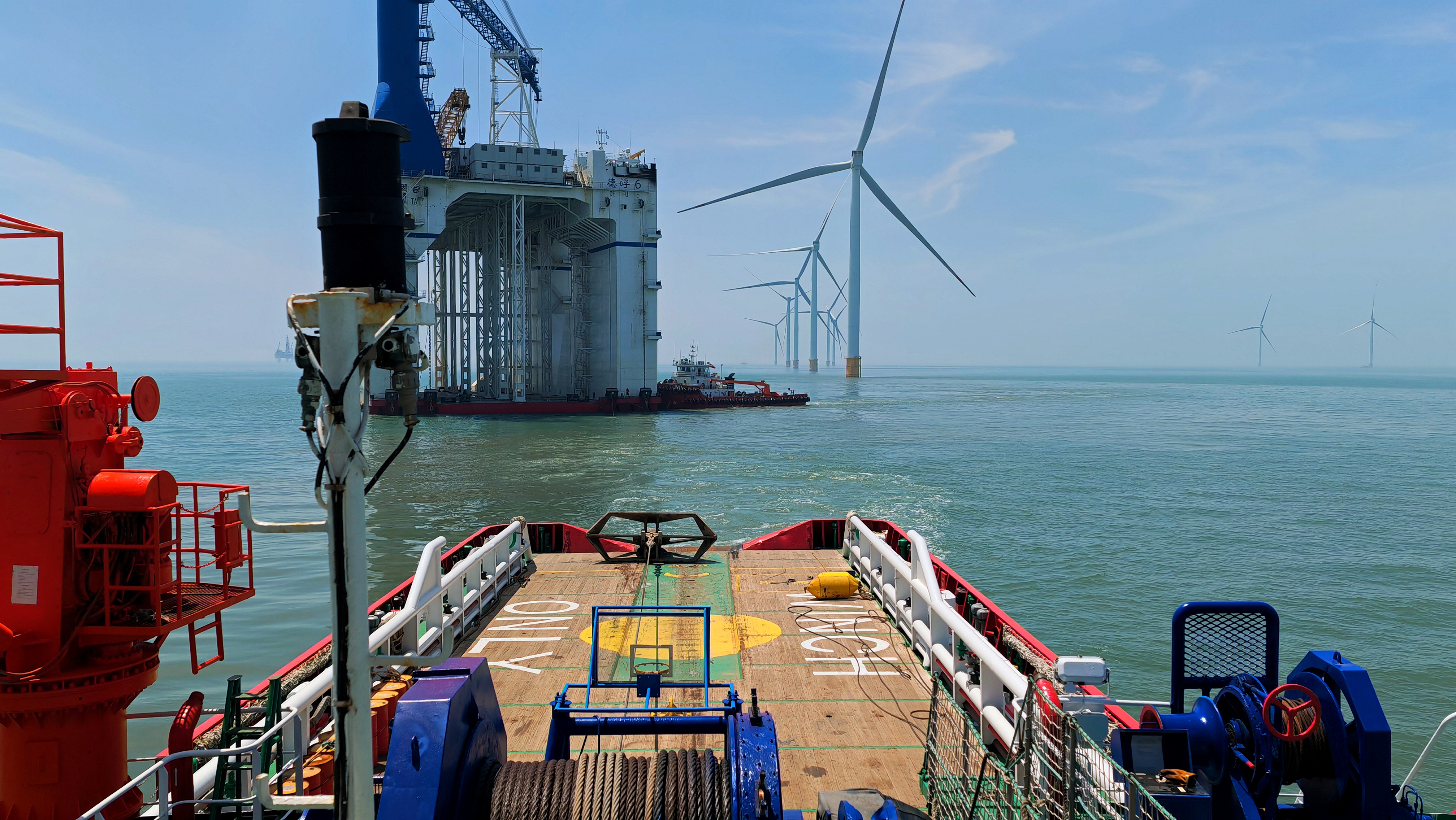 胜利油田海洋石油船舶中心完成大型风电船舶起抛锚施工作业