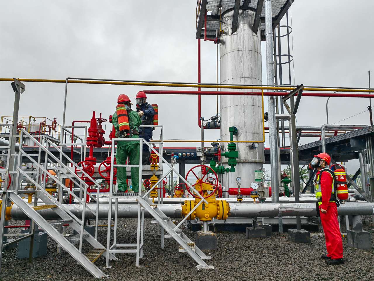 普光分公司采气厂开展地灾管道泄漏实景复盘演练
