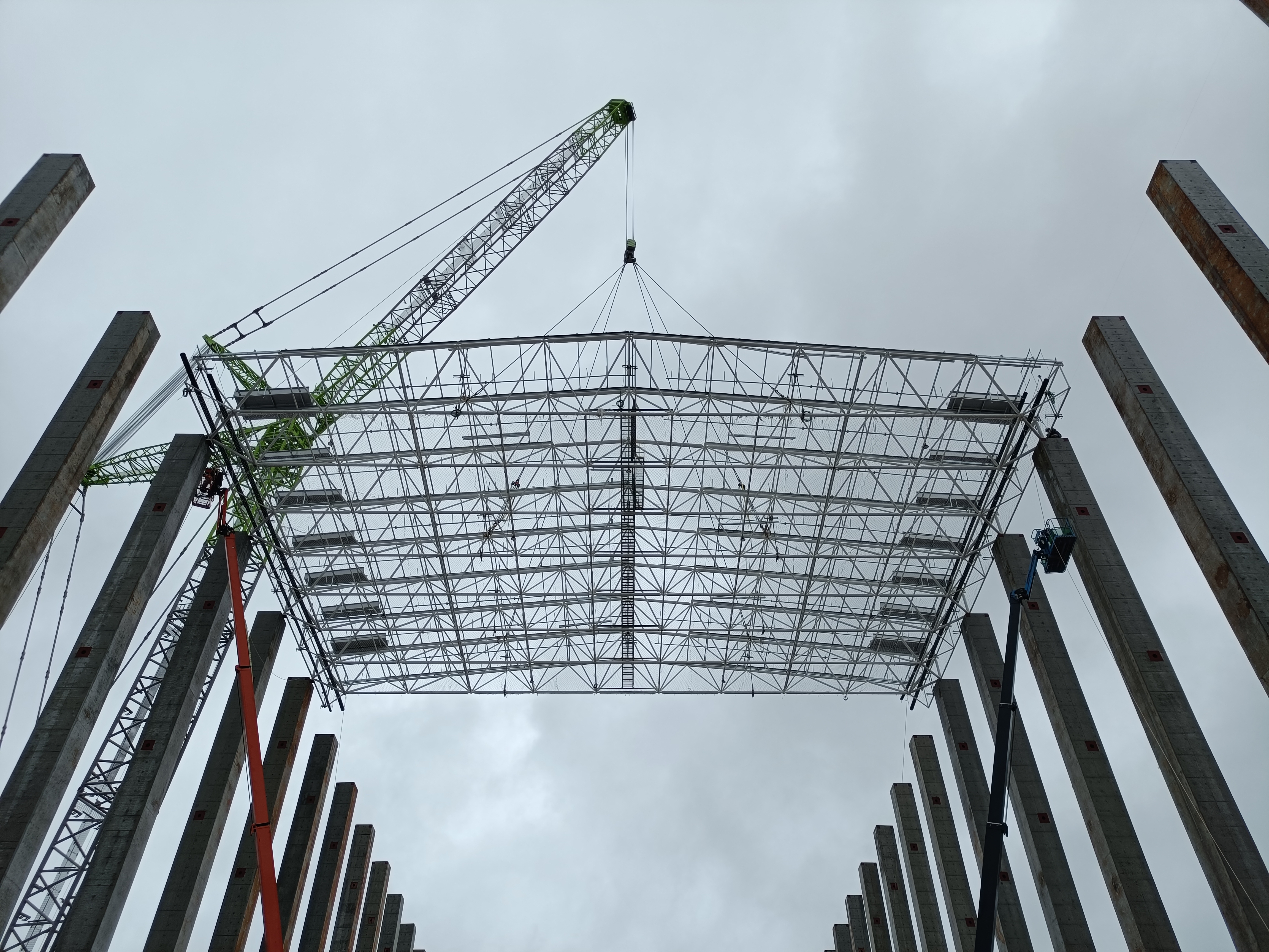 四建完成埃克森美孚惠州项目立体仓库首件顶部网架吊装