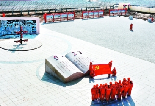 3月3日,营二管理区组织员工到营二井纪念碑前重温入党誓词。 朱克民 摄