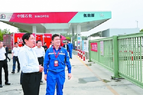 5月11日上午,张玉卓来到上海石油安智油氢合建站,了解加氢装置工艺流程及安全生产经营情况。 本报记者 章 铮 摄