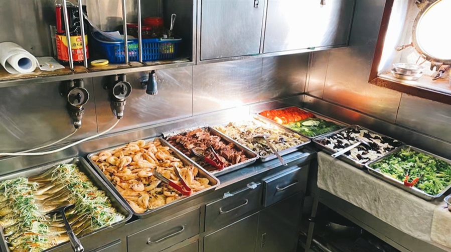 兵马未动粮草先行,船上厨师把船员的伙食放在心上,精心搭配,用心烹饪。他们的付出,保证了船员生活,更是完成好每一个生产项目的最基本保障。