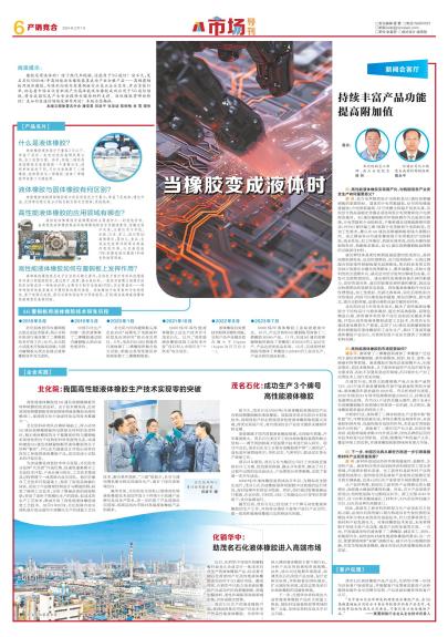 液体橡胶通常指分子量在2万以下、常温下具有一定流动性的黏稠状聚合物,加工成型方便。它可以应用于手机、电脑、汽车、军工、航天等5G高频通信,婴幼儿、食品、化妆品包装等环保要求较高的柔性印刷,以及高性能TPV(热塑性硫化橡胶)和绿色轮胎等领域。