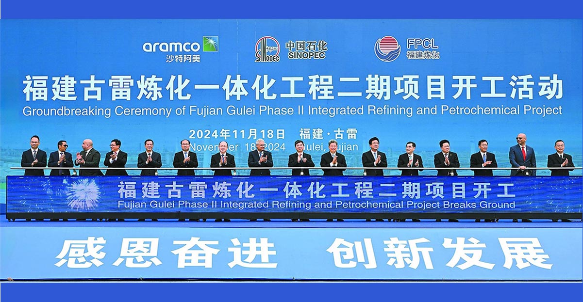 11月18日,福建古雷炼化一体化工程二期项目开工活动在福建省漳州古雷石化基地举行。该项目由中国石化、福建炼化和沙特阿美合作建设,是福建省迄今投资规模最大的产业项目,预计将于2030年全面投产。 >>>详情