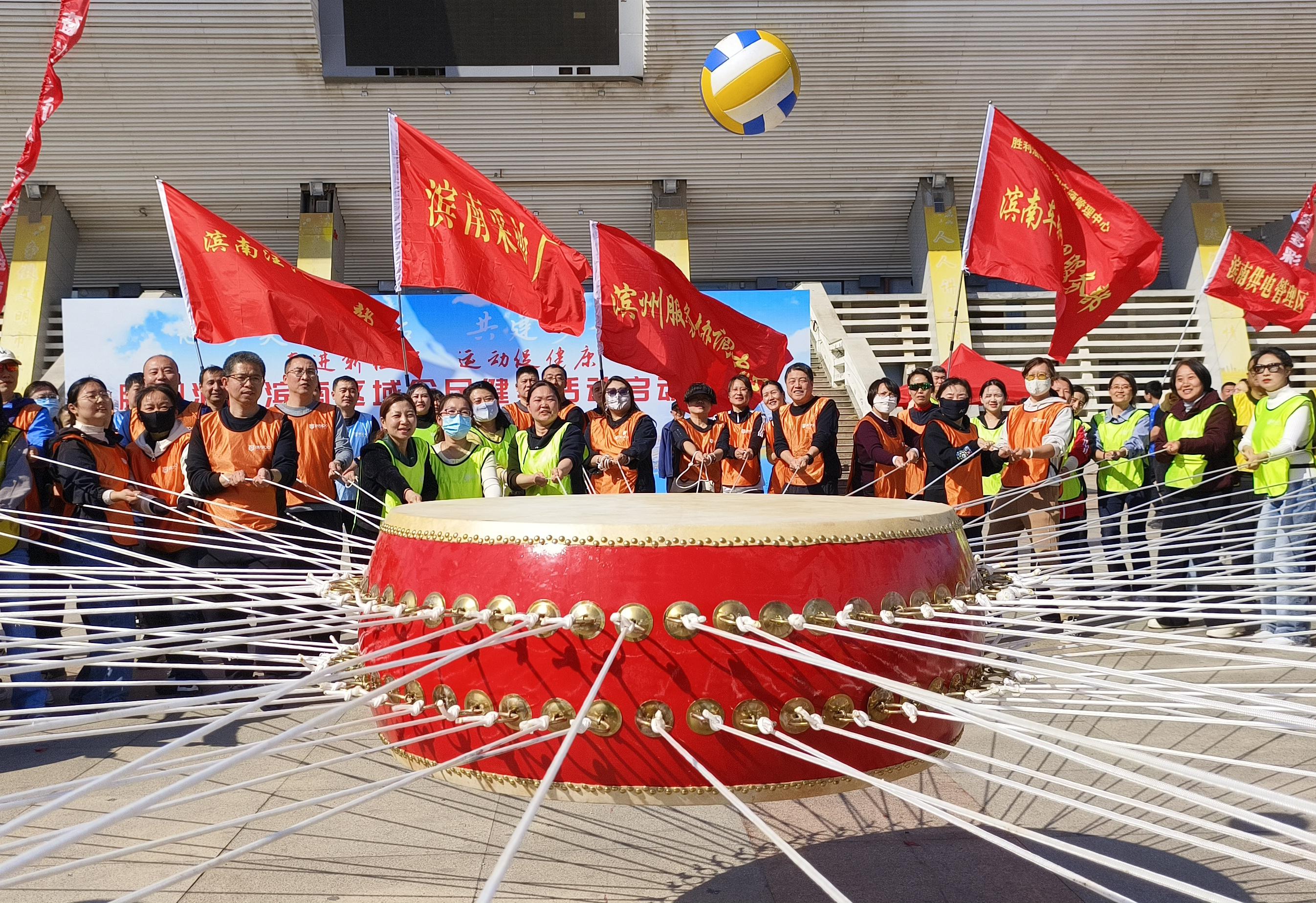 3月21日,胜利油田滨州服务协调中心举办2025年滨南区域全民健身活动。图为百人战鼓——300人连续颠球突破15个。肖金禄 马争艳 摄影报道