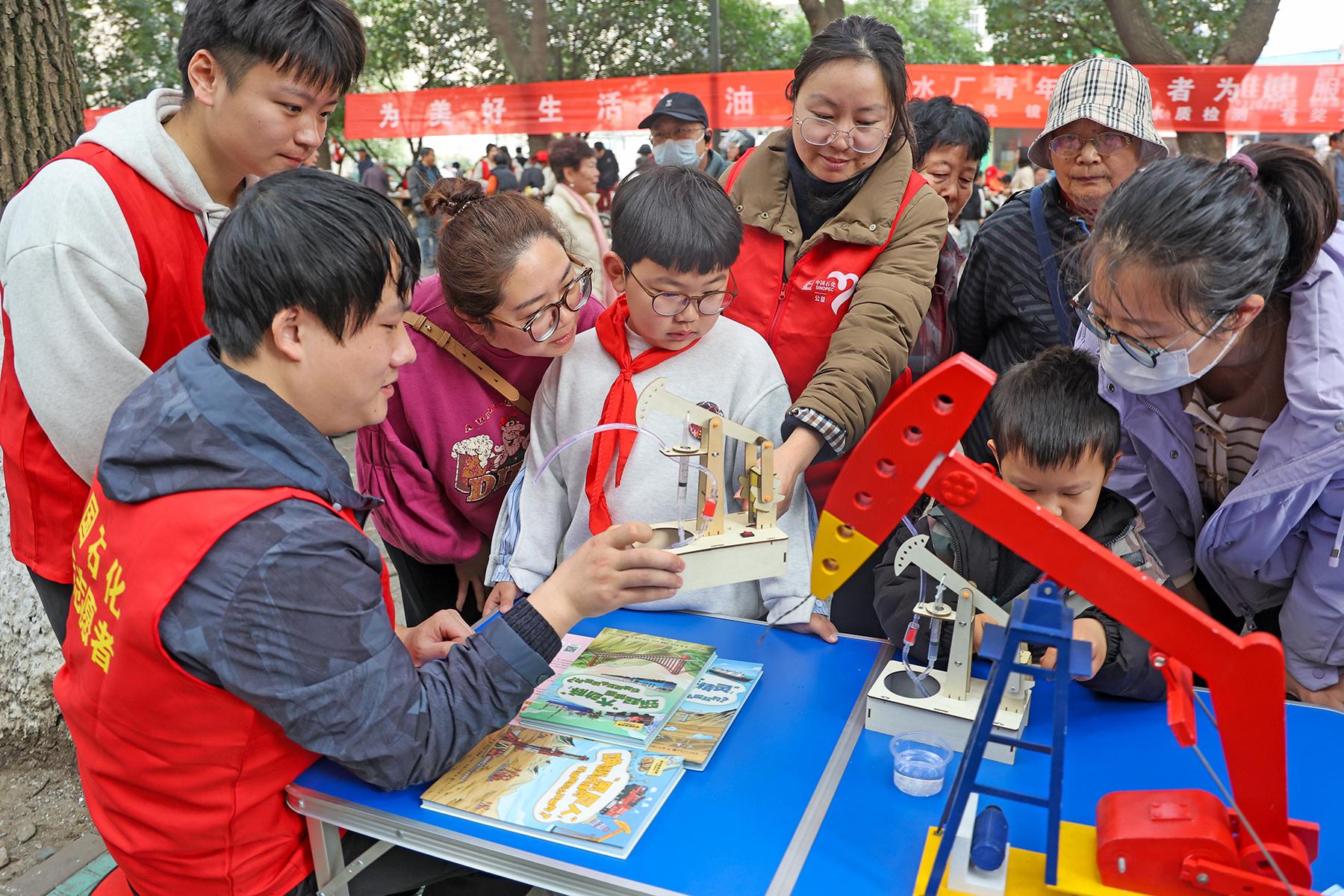 3月1日,扬子石化青年志愿者为社区小学生带去了一场别开生面的石化科普课,通过模型、实验现场科普教学,为学生们讲述石油石化知识,让他们感受石化科技的魅力。李树鹏 摄