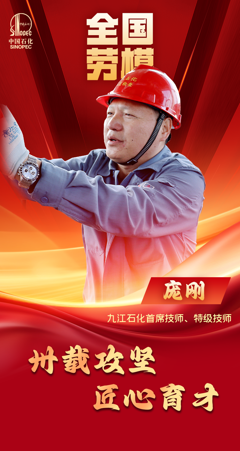 庞刚,九江石化首席技师,特级技师。他扎根生产一线30年,秉承“干一行爱一行、专一行精一行”的钻研精神,在平凡岗位上不断探索、超越,带领团队完成技术攻关19项,优化改进技术20余项,在2024年中国创新方法大赛全国总决赛获二等奖。享受国务院政府特殊津贴,获得江西省优秀共产党员、省高层次C类人才、省双千高技能领军人才,中国石化精神文明建设标兵、技术能手等荣誉。