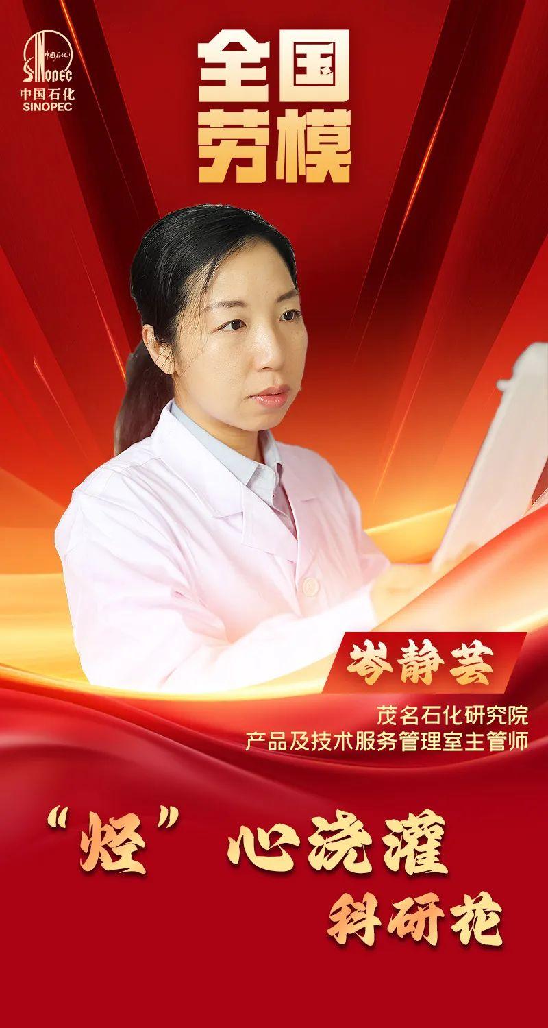 岑静芸,茂名石化研究院产品及技术服务管理室主管师,研究员。她坚守科研一线19年,潜心开发高端创效、绿色低碳的化工新产品,承担科技项目23个,获广东省科技进步奖二等奖、广东省石油与化学工业协会科技进步奖一等奖,中国石化科技进步奖特等奖1项、二等奖2项、三等奖1项。获得中国石化闵恩泽青年科技人才奖、中国石化劳动模范等荣誉,2019年当选“中国好人”。