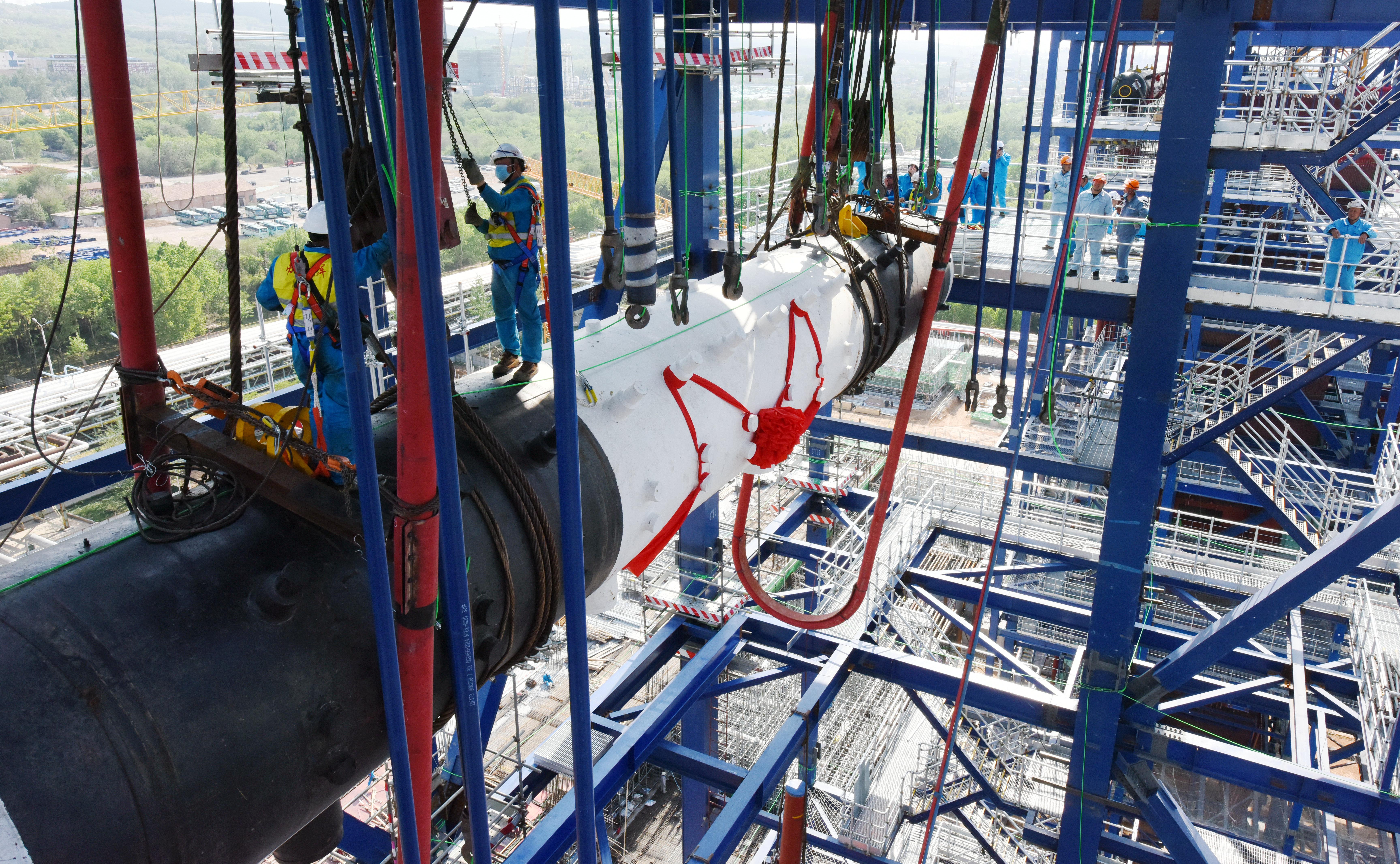 吊装就位 | 4月29日,齐鲁石化1-4号热电机组背压替代改造项目10号锅炉汽包安全吊装就位,标志着新建9号、10号两台锅炉全面进入本体设备安装阶段。图为吊装现场。苏成武 摄