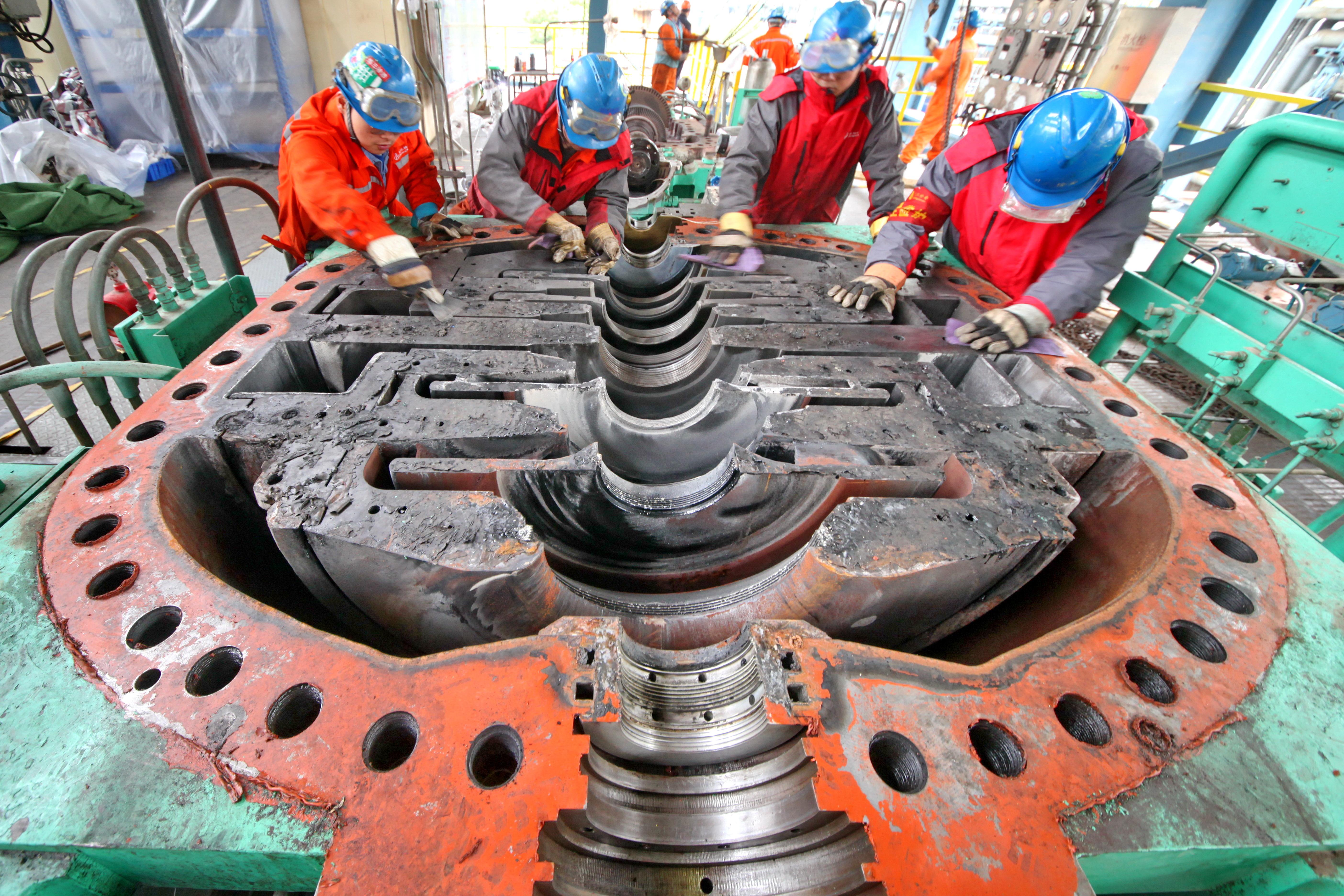 打好检修改造攻坚战 | 九江石化生产装置大检修工作进入攻坚阶段,参战人员把好工序技术质量关,全力以赴打好检修改造攻坚战。图为检安维修人员在进行检修工作。柯斌 摄