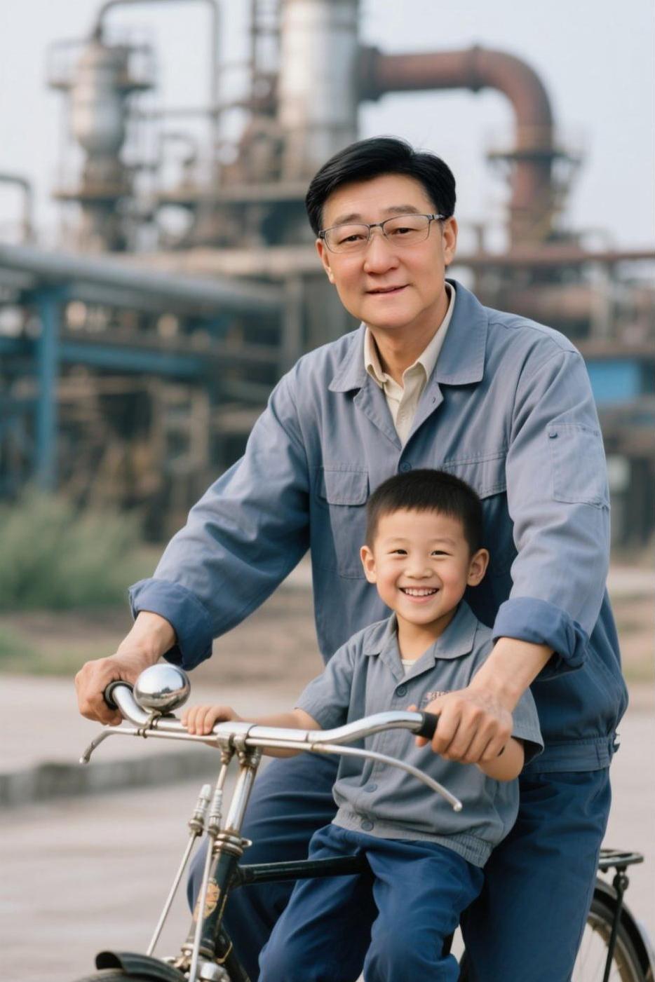 三十年后,我俯身钻进这张泛黄的照片,回想自己正被永久牌自行车硌得直晃小腿。炼油厂管线的围墙外小树林是童年快乐的美好记忆,不经意间,儿时的我忽然转头望来,睫毛沾着蜜色余晖,定格了永恒瞬间。(河南炼化 王东亮)