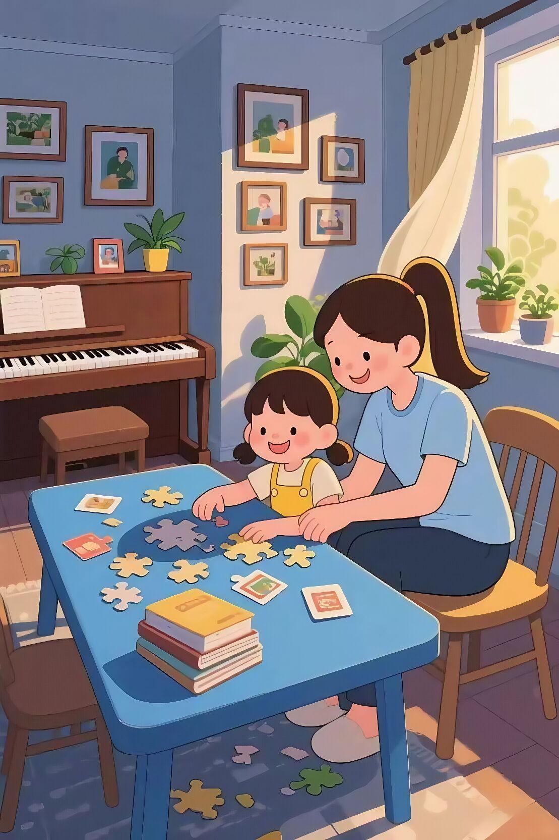嘿,小时候的我:玩拼图时别着急,慢慢拼,那是在拼凑快乐和勇气。未来路长,这些美好会伴你一路欢畅。(中韩石化 董晓丹)