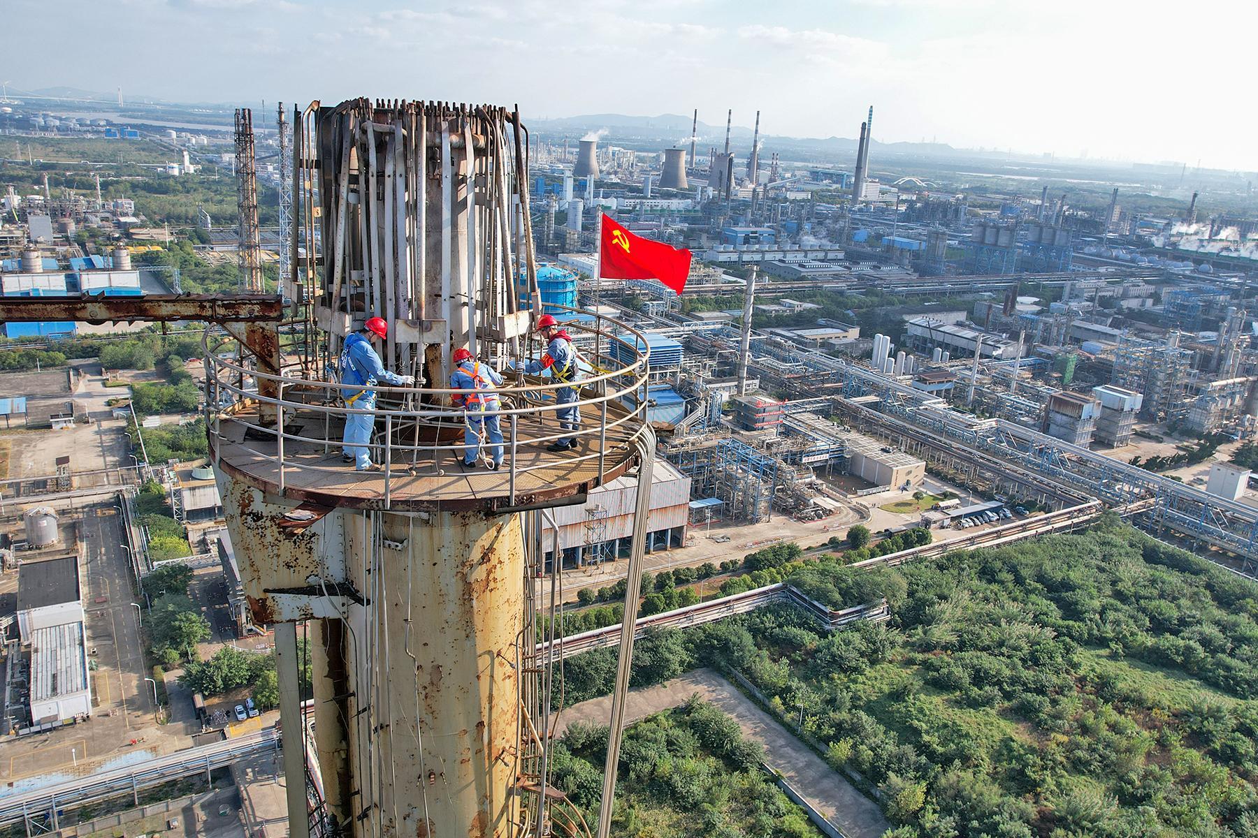 扬子石化在部分装置检修消缺中,组建装置党员突击队,将催化剂更换、反应器吊装、高架火炬检修等“硬骨头”作为党员骨干关键项目,集中力量攻坚克难。突击队员主动亮身份、作表率,以基础网格划分“责任田”,表单化分解具体保障措施,责任到人、落实到位,确保此检修消缺工作的安全、环保、质量等全面受控,让党旗在检修一线高高飘扬,彰显了党组织战斗堡垒作用和党员先锋模范作用。黄圣 文 李树鹏 摄