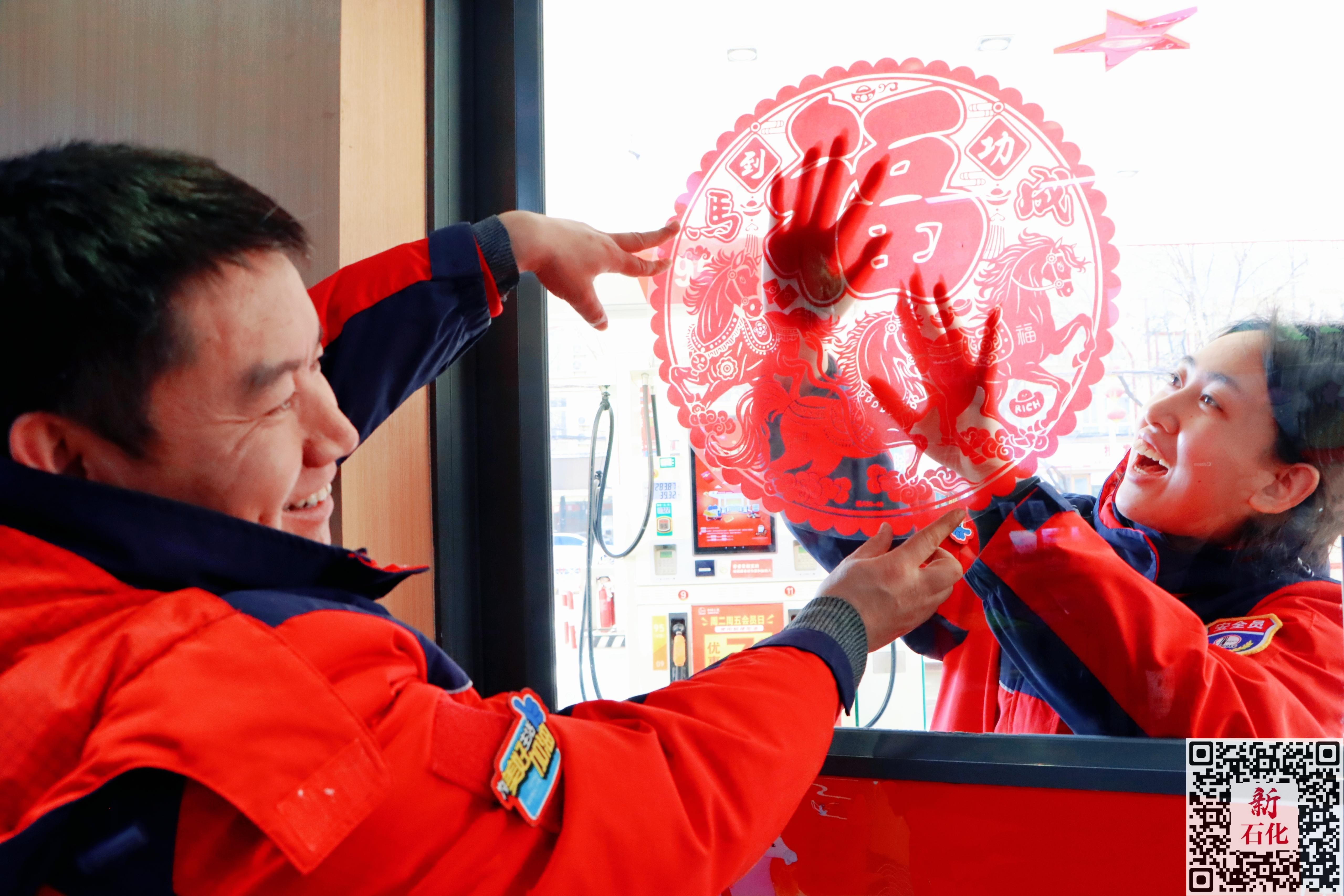 春节假期前夕,陕西石油各加能站组织员工们张贴窗花并悬挂中国结,为广大顾客朋友营造浓厚的新春氛围。同时,各加能站还为顾客朋友赠送象征吉祥如意的福字、对联等“福礼”,传递浓浓的新春祝福。呼延月心 摄