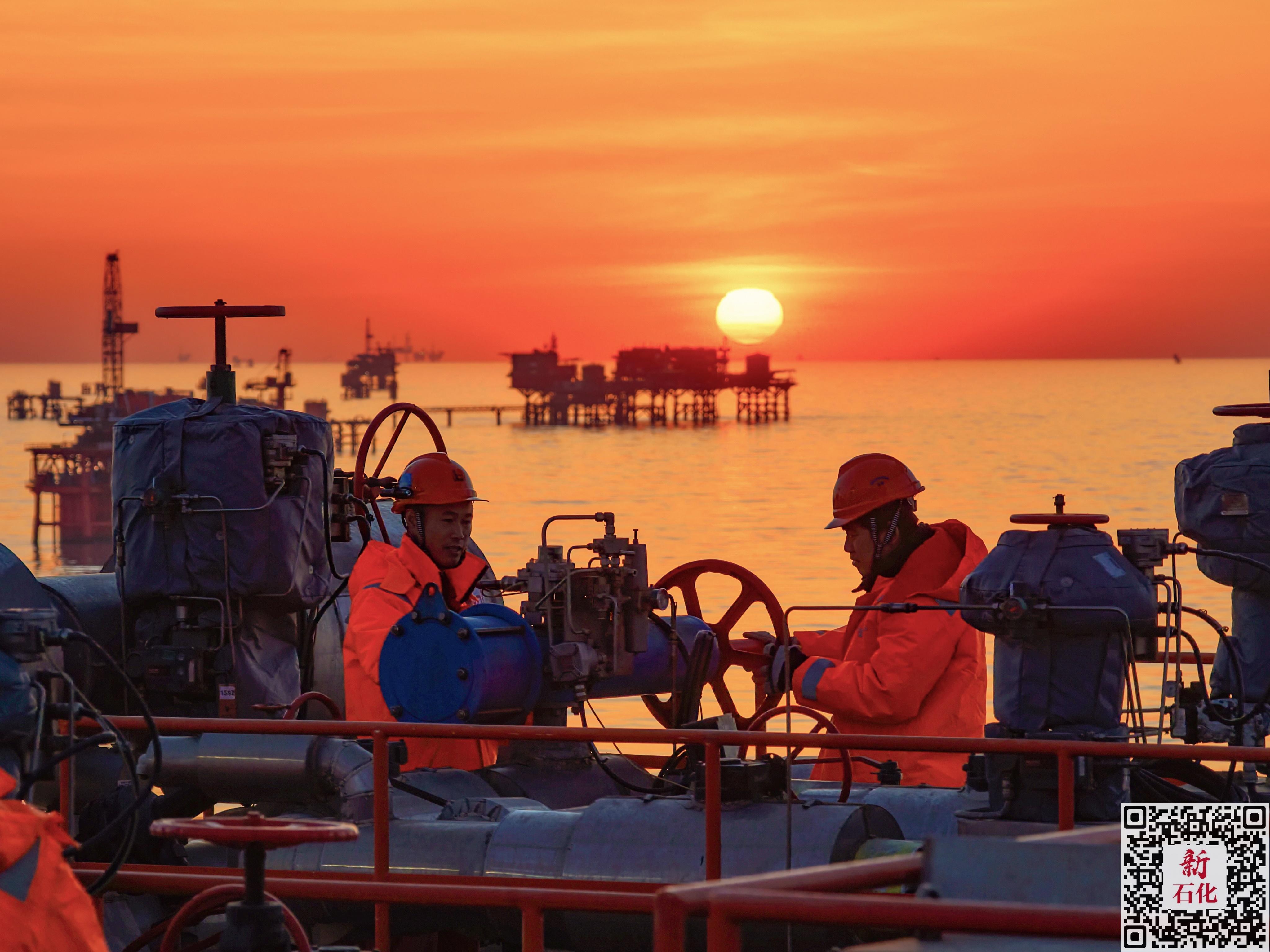 2月17日,坚守在岗位的胜利油田海洋采油厂中心三号平台员工迎着马年第一缕阳光巡检设备设施,全力保障节日期间海上油气安全平稳生产。张灿 摄